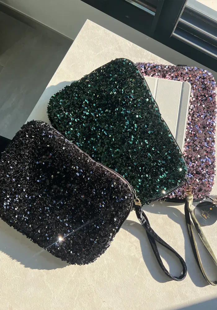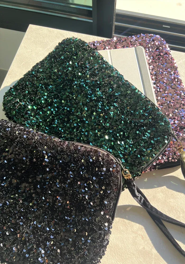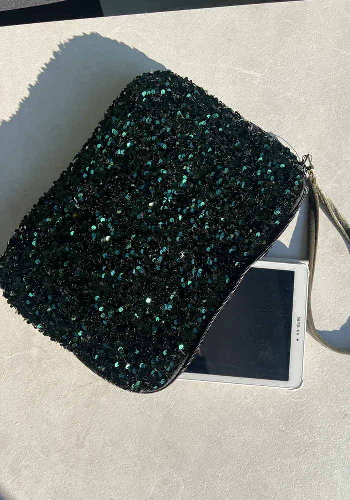 Pochette pour ordinateur 13 pouces en sequins et velours.