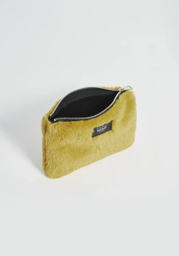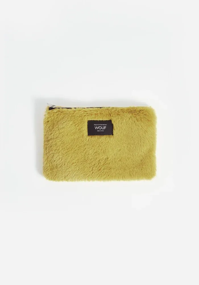 Pochette Plate Foxie en fausse fourrure jaune.