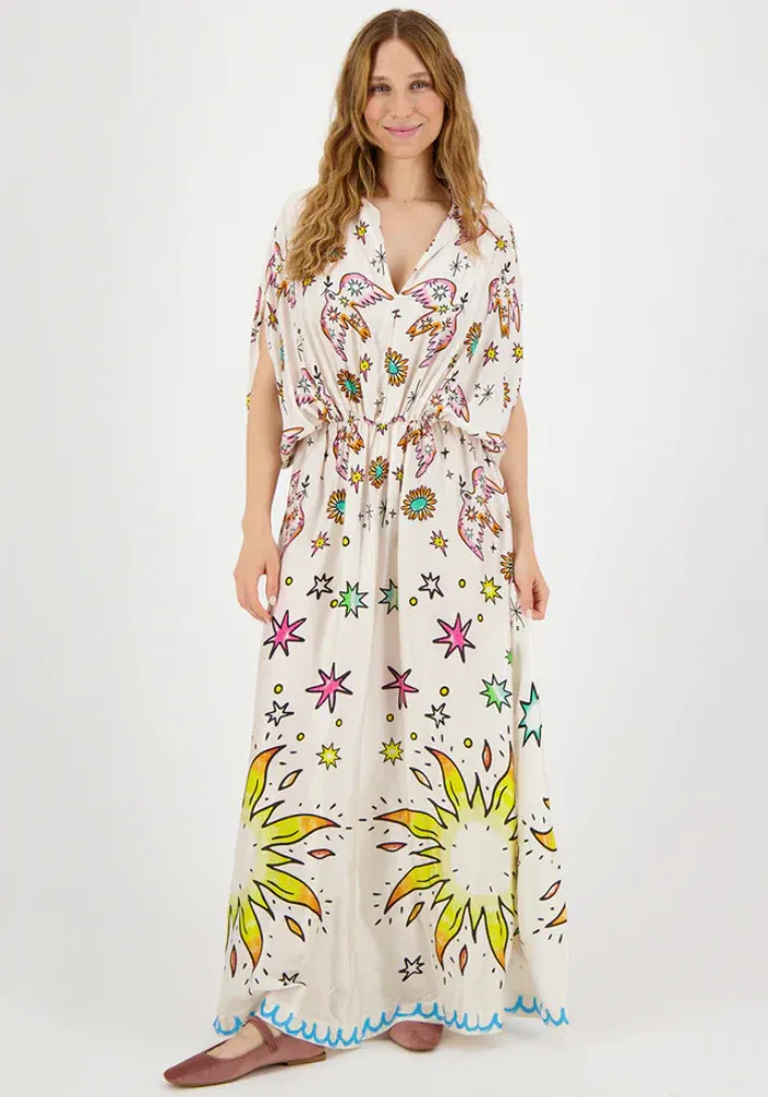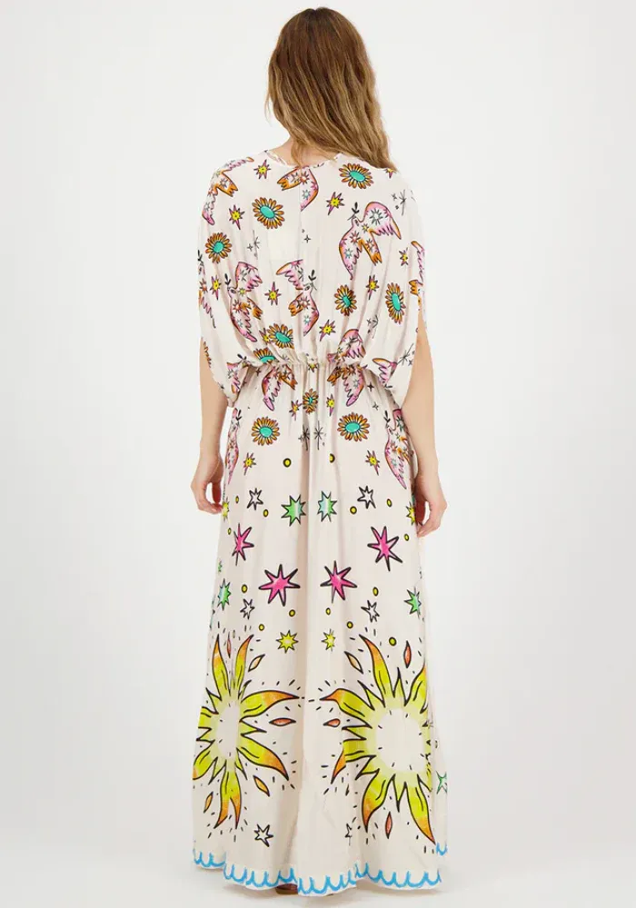 Robe Kaftan Rose Enlightenment cintré à la taille avec effet manche chauve souris.