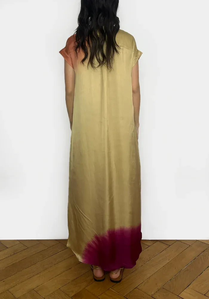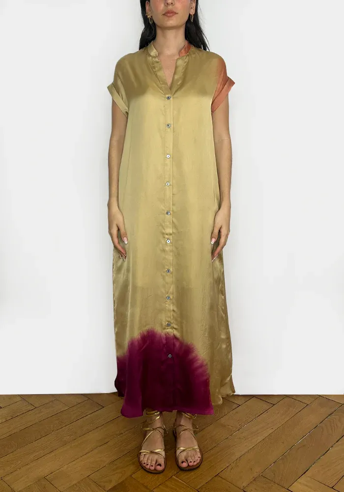 Robe Chemise Martina droite avec manches courtes et deux taches en tie and dye