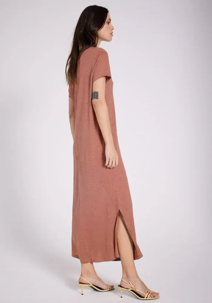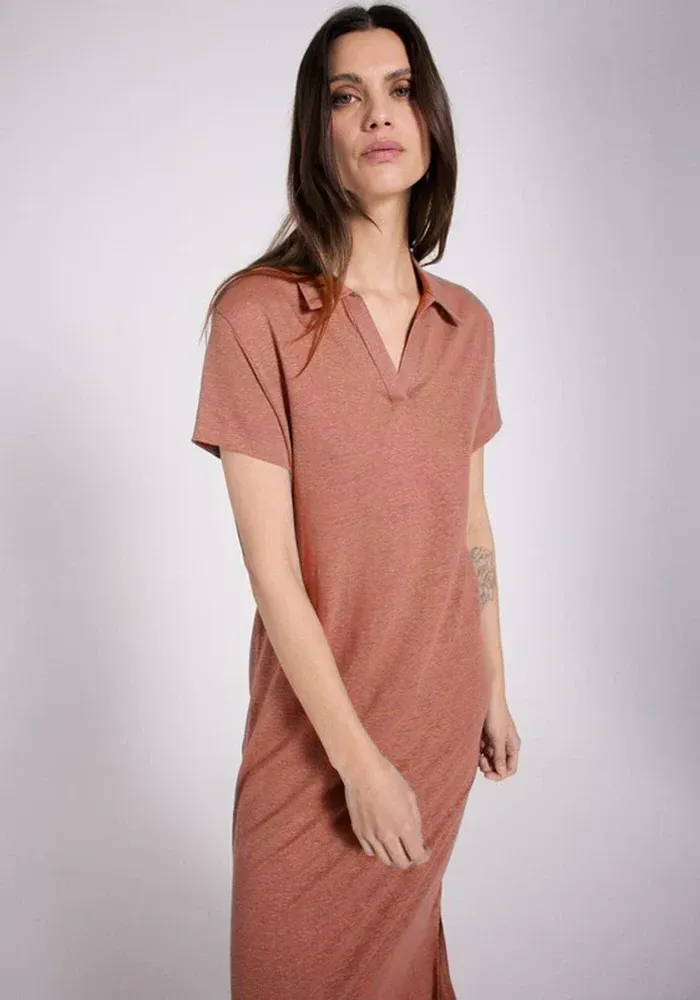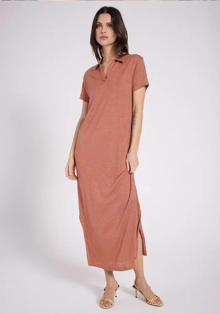 Robe Orian coupe t-shirt longue avec un col polo en v et des manches courtes.