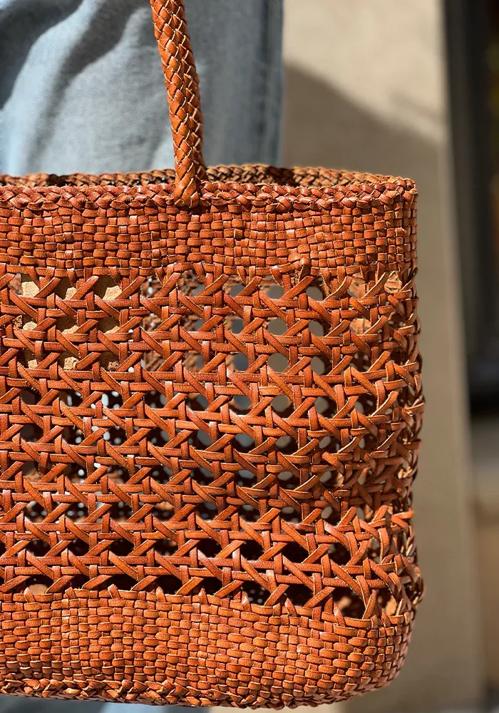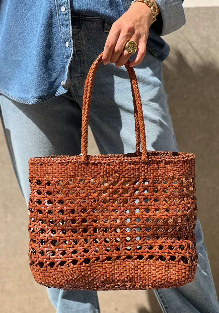 Sac Eclipse cabas en cannage ajouré en cuir dans le coloris Tan.