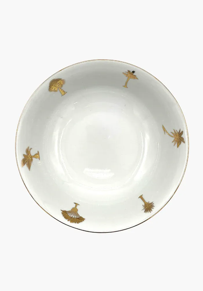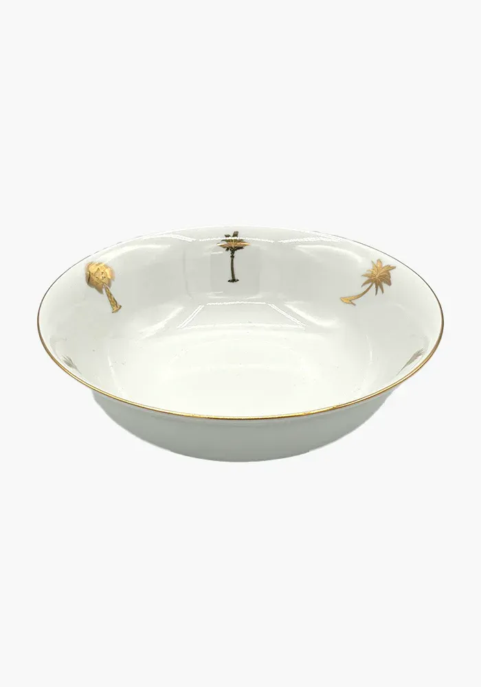 Compotier/saladier en porcelaine avec des motifs palmiers en doré.