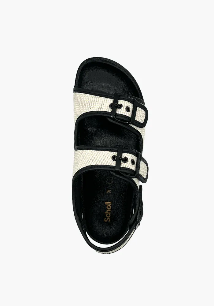 Sandales Juliette avec deux brides larges et une bride à l’arrière décoré d’un effet rotin.