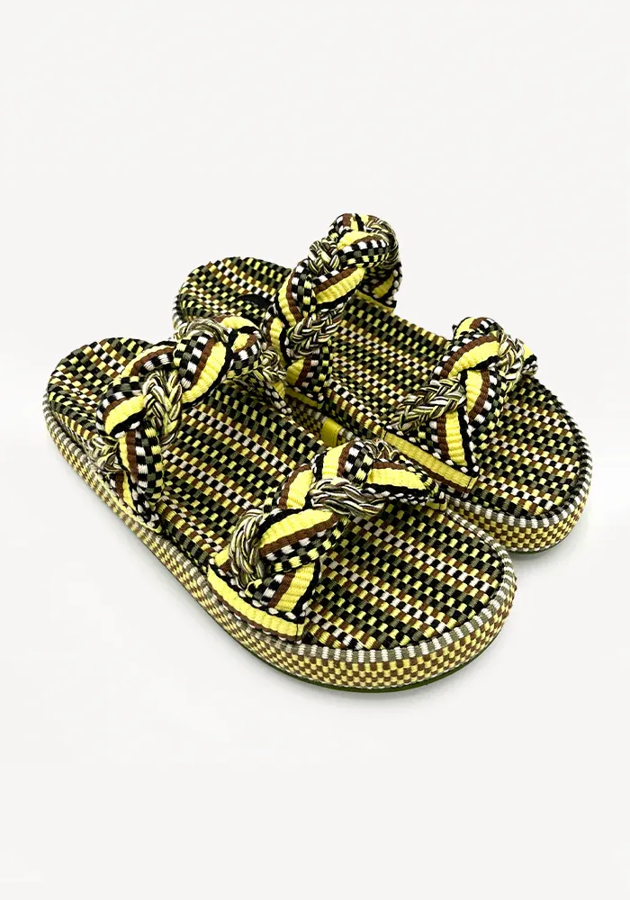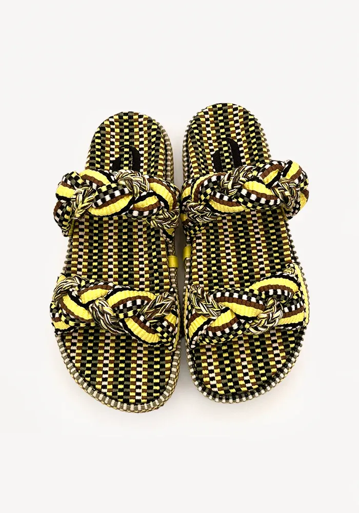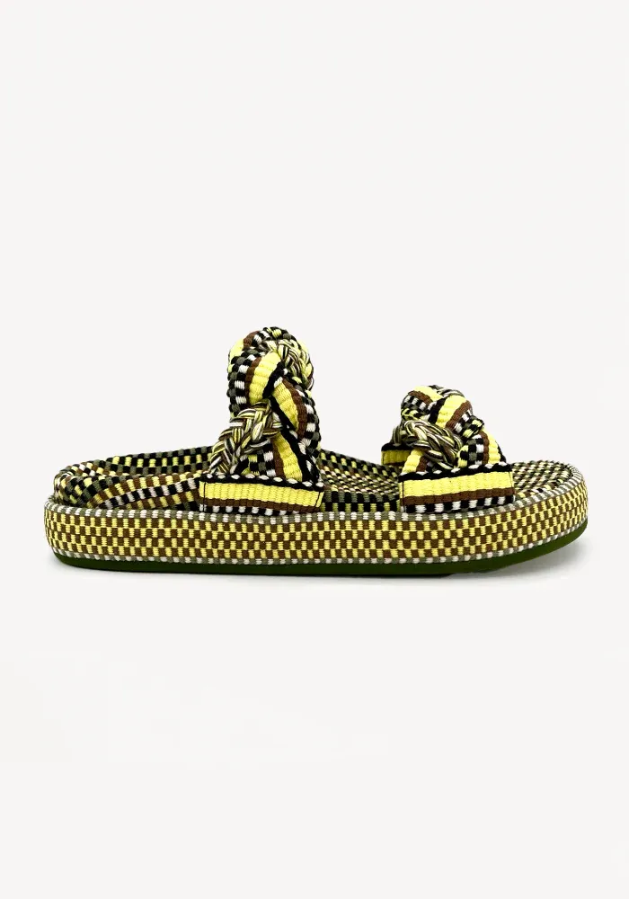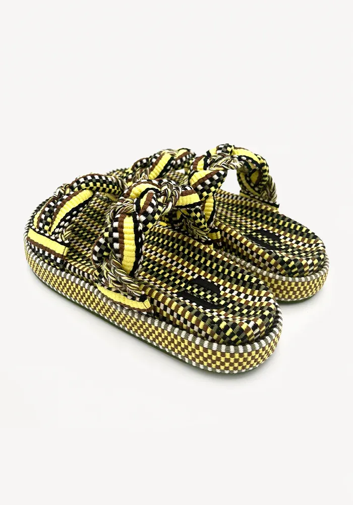 Sandales Daniela à plateforme avec deux brides de tissus tressés.