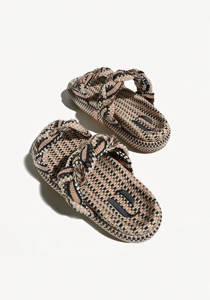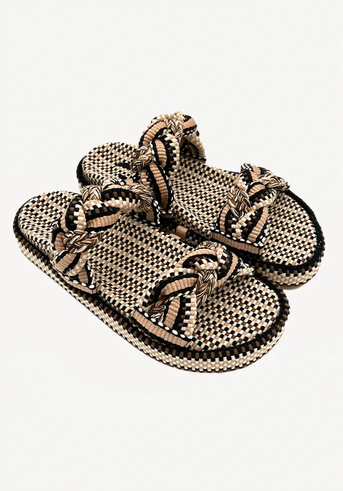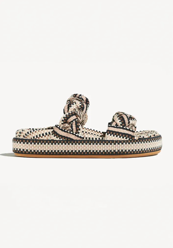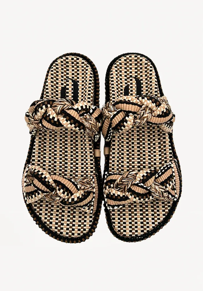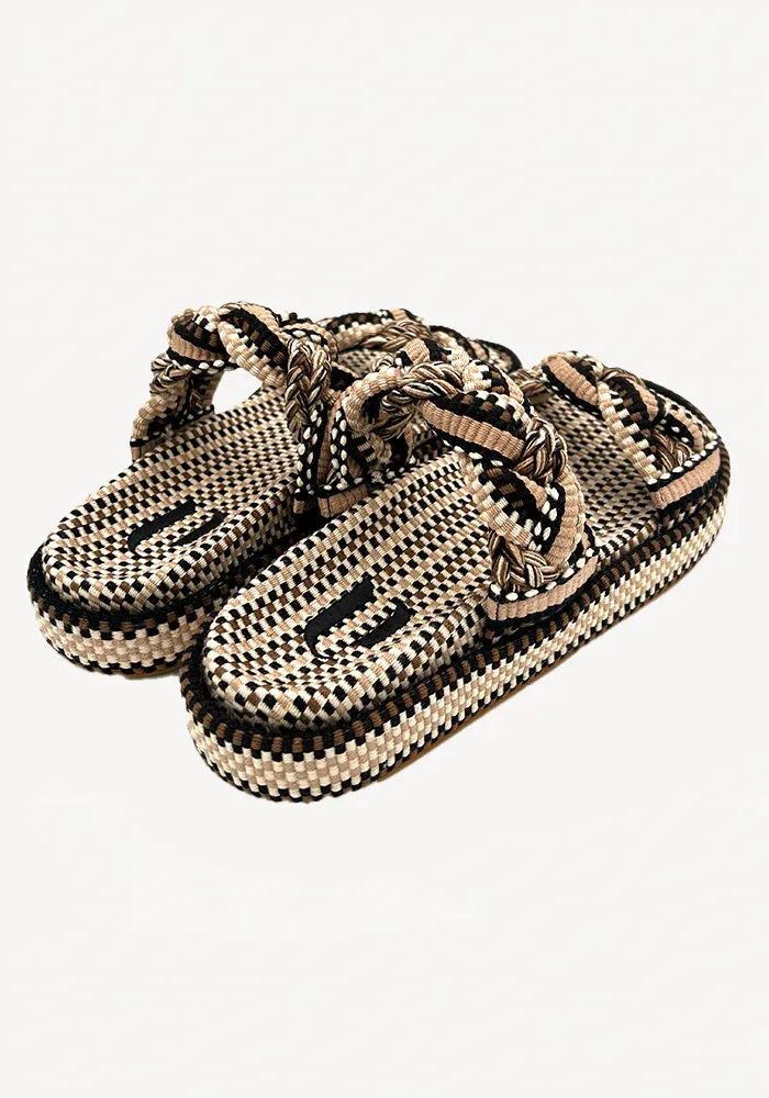 Sandales Daniela à plateforme avec deux brides de tissus tressés.