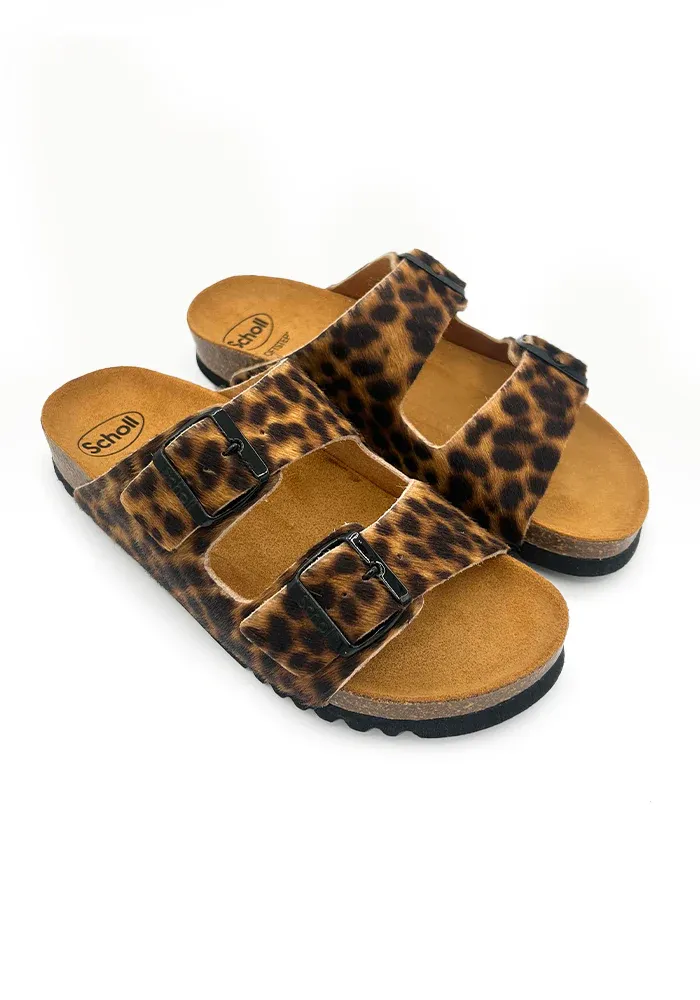 Sandales Josephine léopard avec deux brides et deux boucles noires