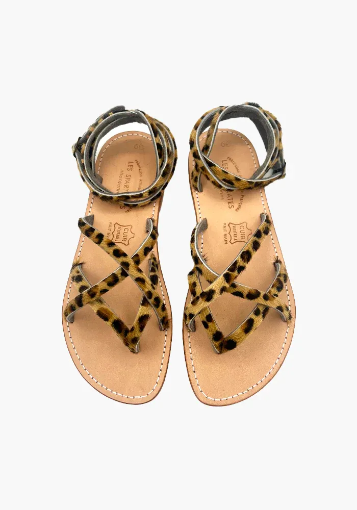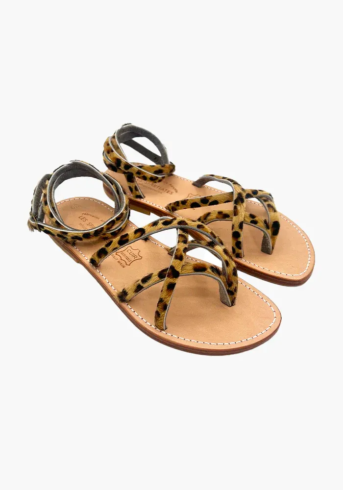 Sandales Linda avec 4 brides fines sur le pieds qui se croisent et deux brides qui s’enroulent autour de la cheville.