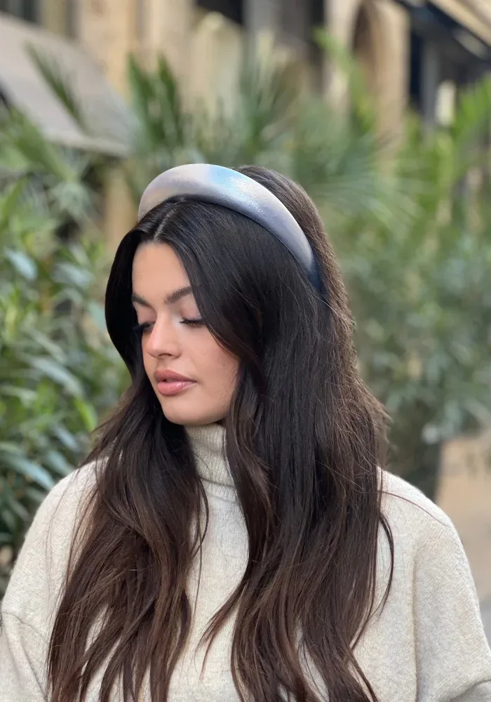Serre-tête Blair argenté uni avec un effet matelassé.