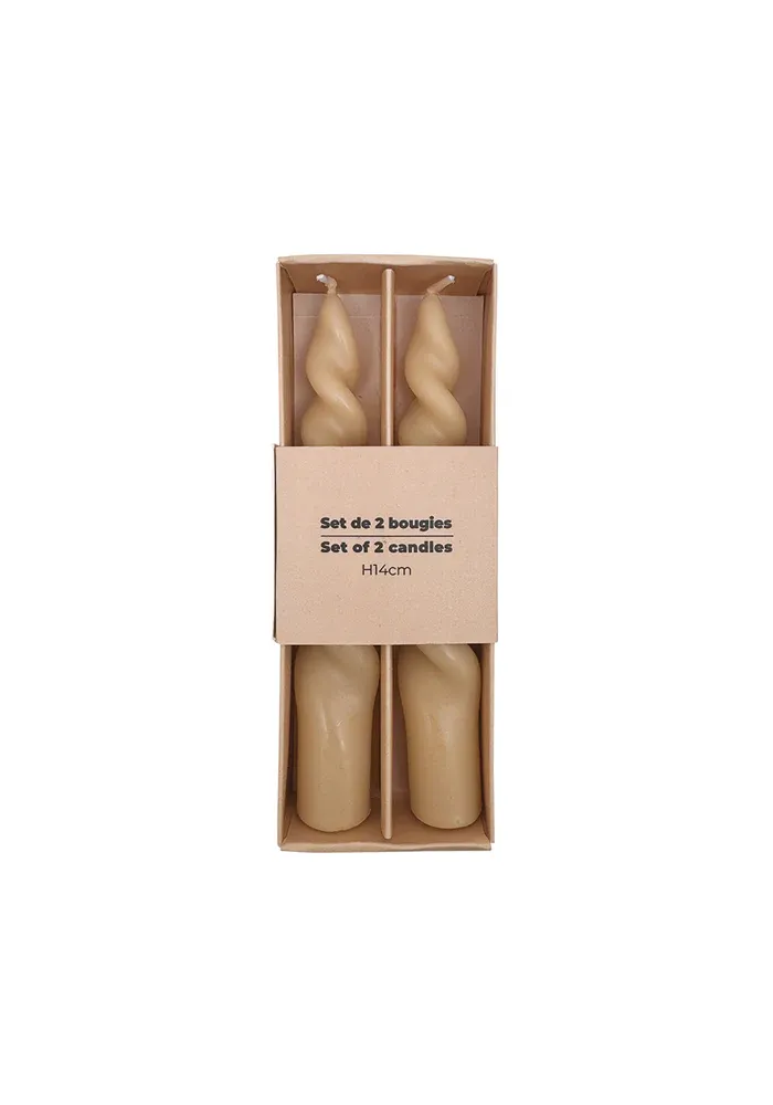 Set de 2 bougies courtes torsadées.