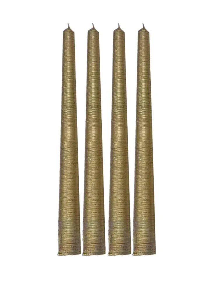 Set de 4 bougies cierges dorées striées.