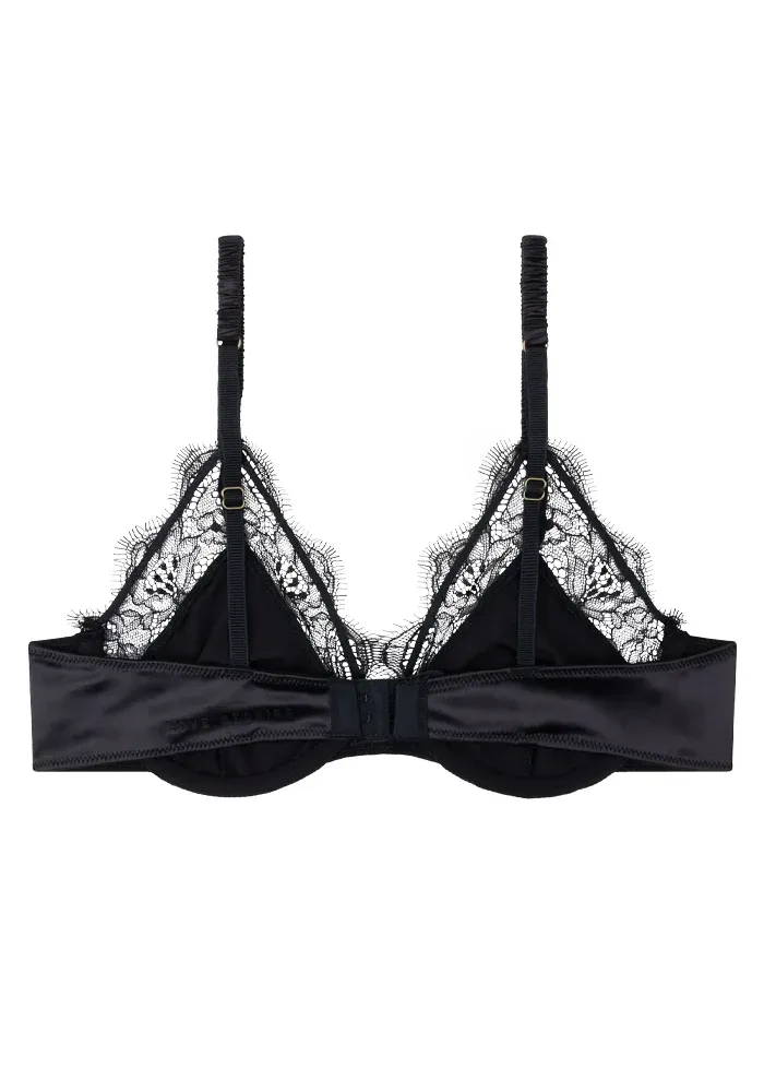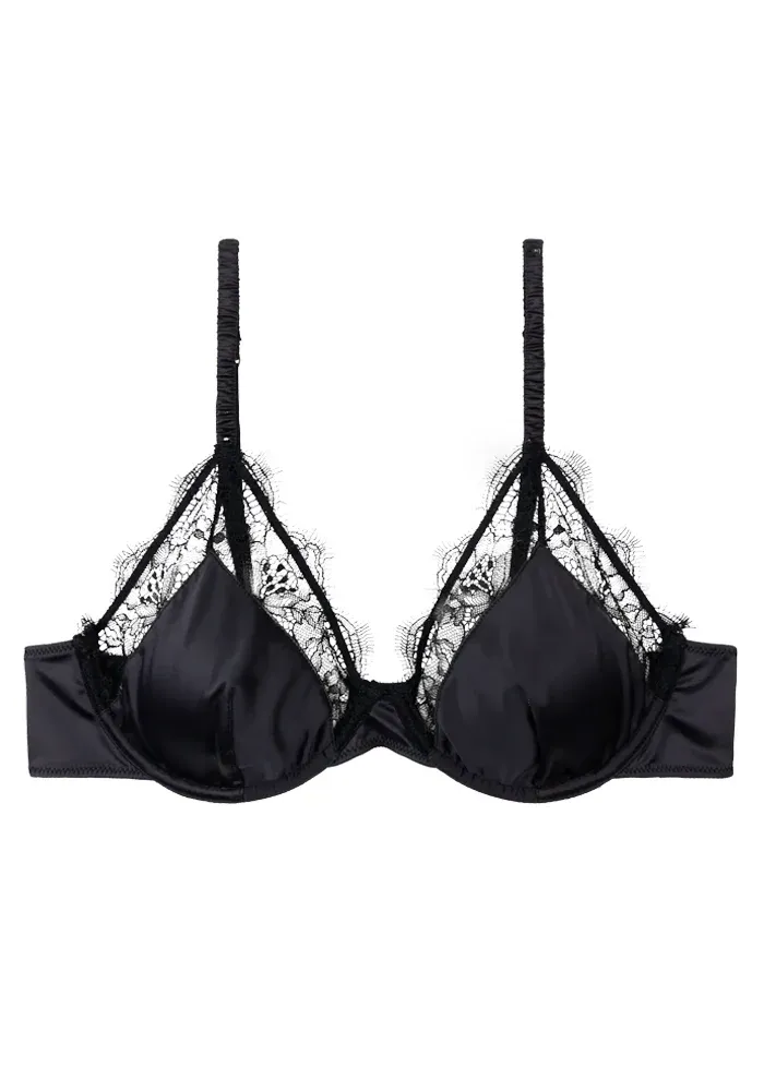Soutien-gorge Lovely noir avec armature et une matière satinée et décorée de dentelle.