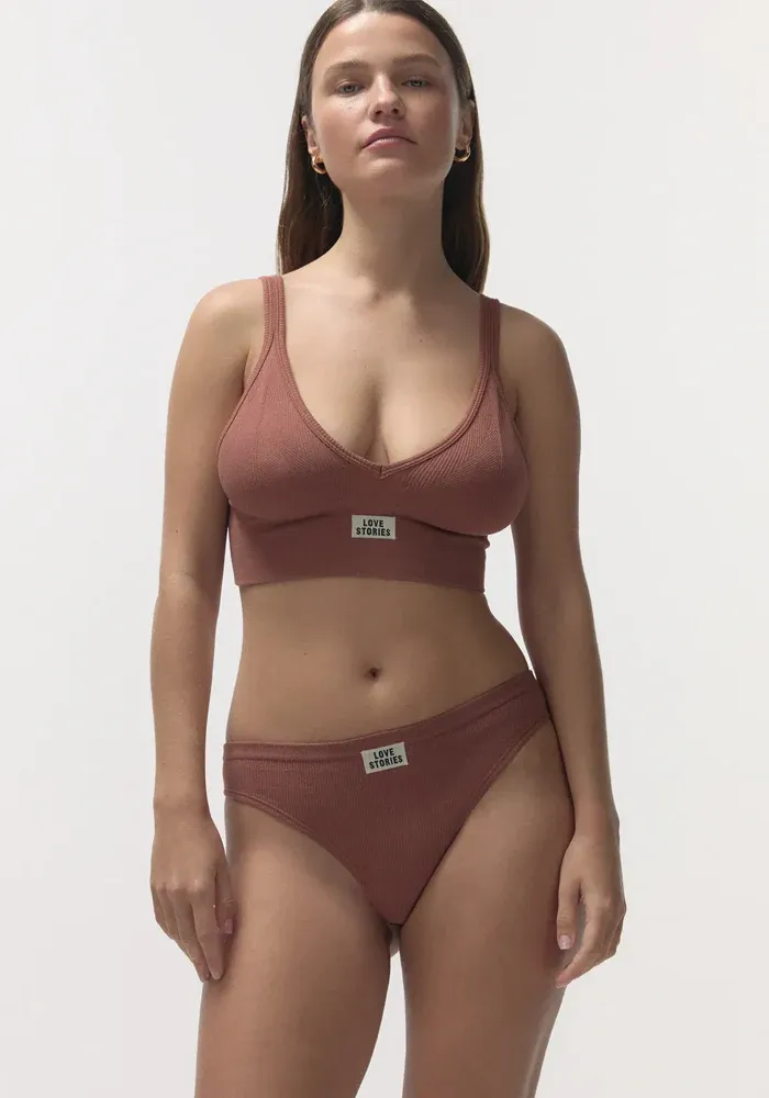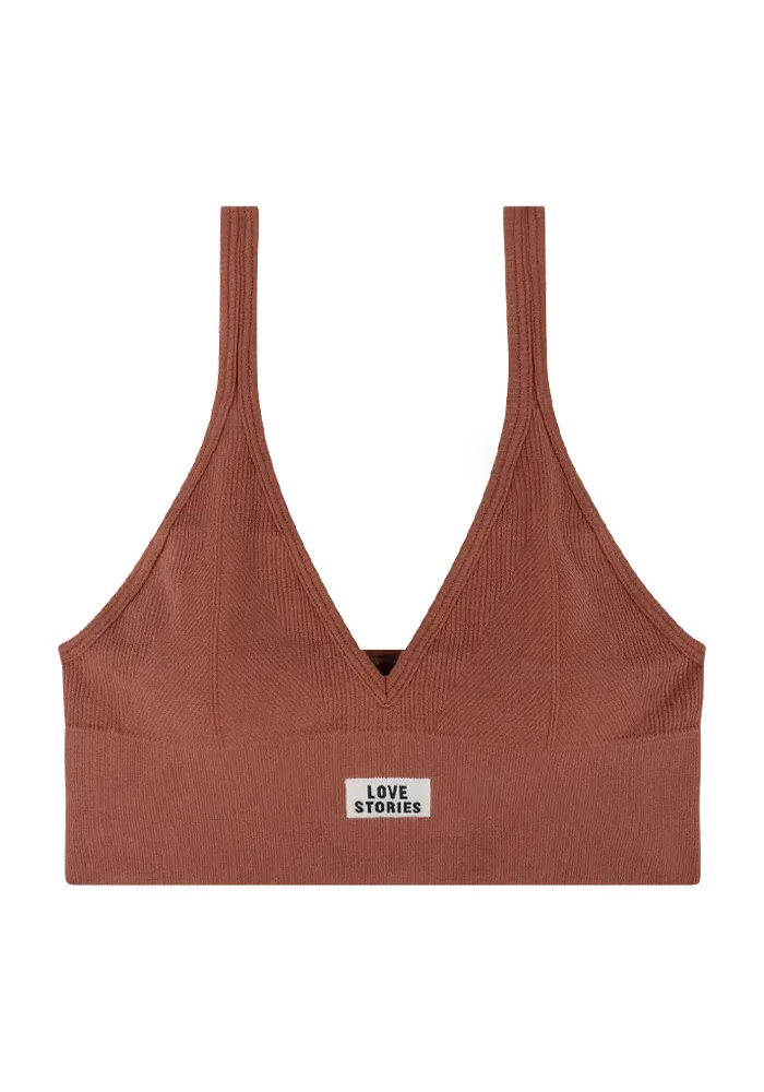 Soutien-gorge Posey marron type brassière triangulaire avec un élastique large sous la poitrine.