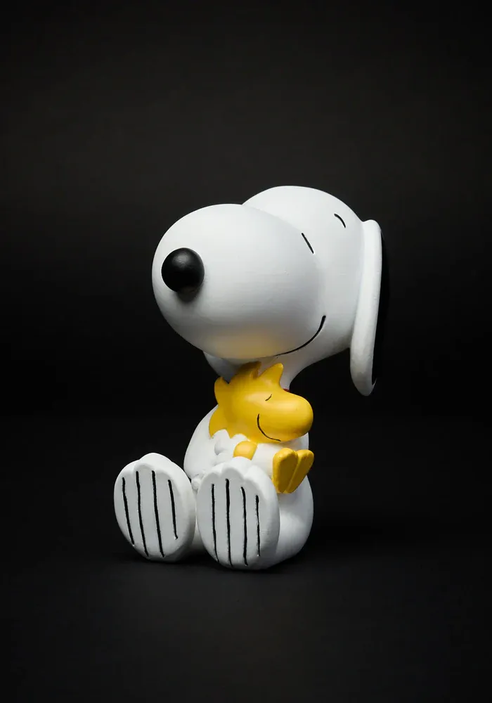 Statue Snoopy assis avec Woodstock en polyrésine.
