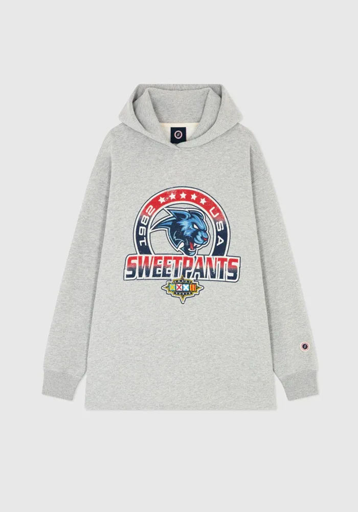 Sweat à capuche Fauve Hood gris clair avec un motif Sweet Pants 1982.
