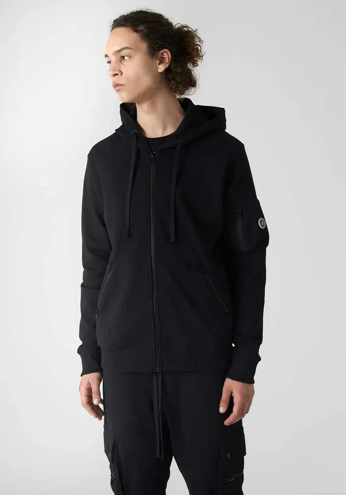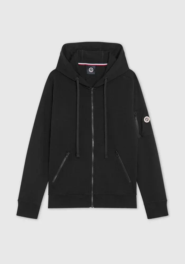 Sweat à capuche Hoodie Zip 23 avec un zip et deux poches sur les côtés.