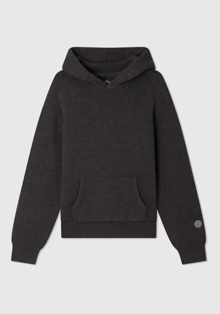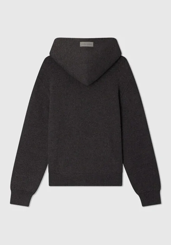 Sweat Sweater Hoodie tricoté gris foncé avec une capuche.