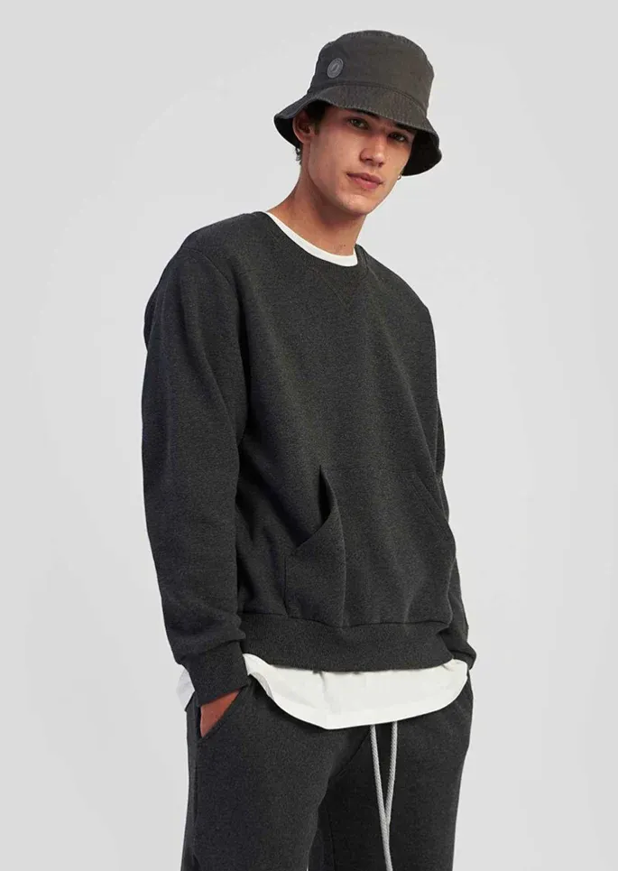 Sweat Wide Crew en coton avec une coupe oversized et une poche ventrale.