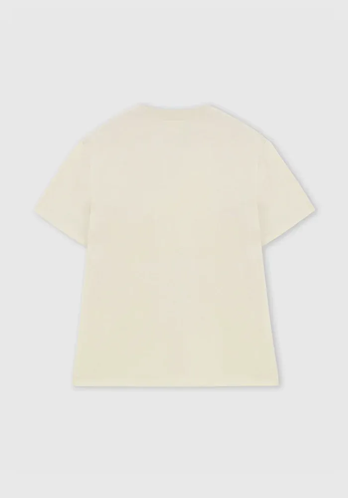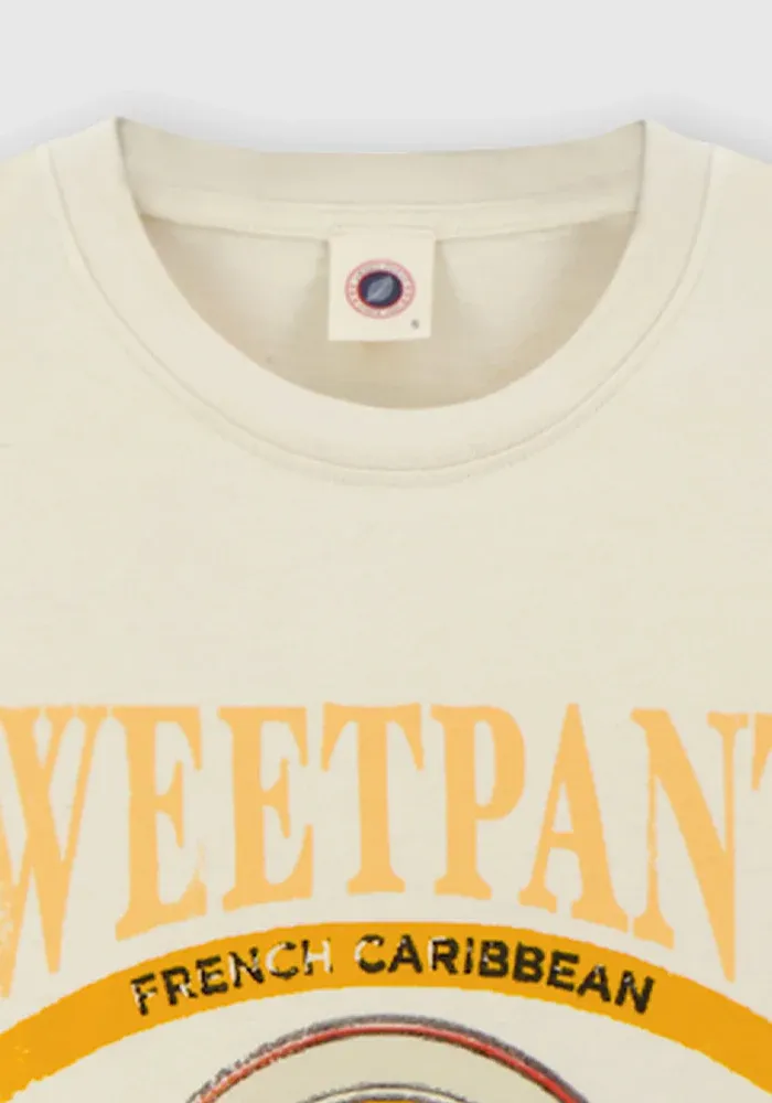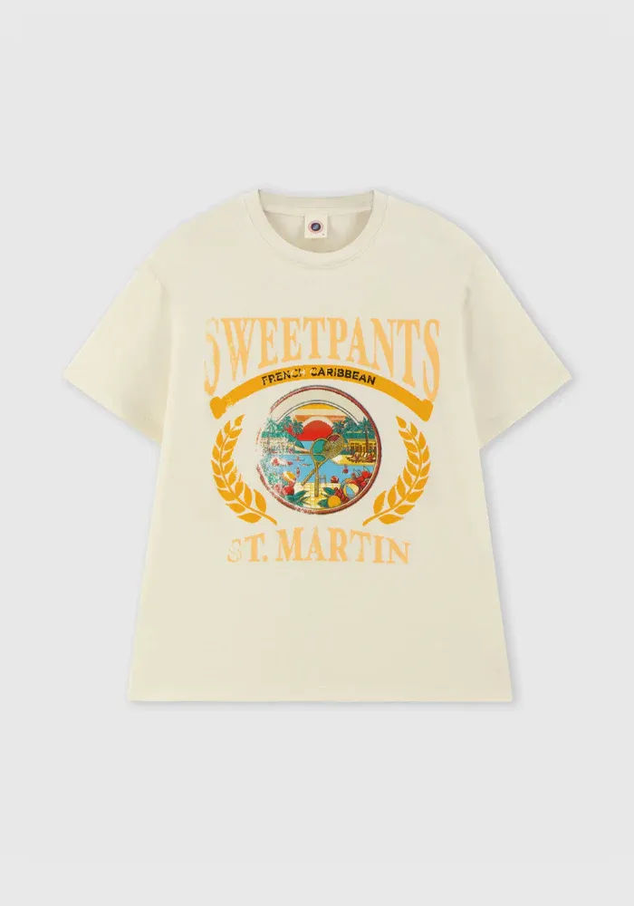 T-shirt Cruise Tee Saint-Martin beige avec une sérigraphie colorée.