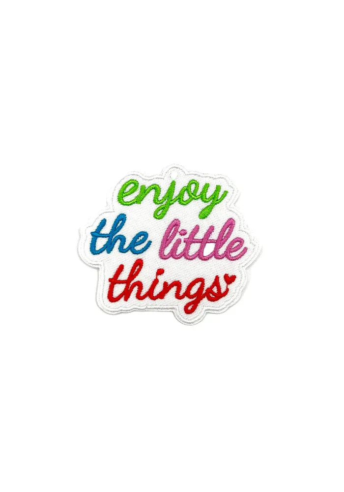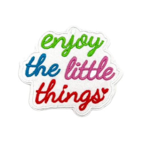 Thermocollant Columbia avec écrit « enjoy the little things » multicolore brodé. Ce patch peut être placé la pochette personnalisable de votre choix !