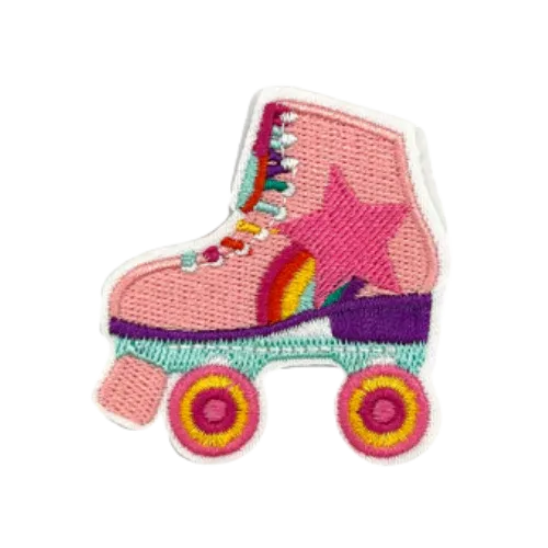 Thermocollant Columbia en forme de patin à roulettes multicolore brodé. Ce patch peut être placé la pochette personnalisable de votre choix !