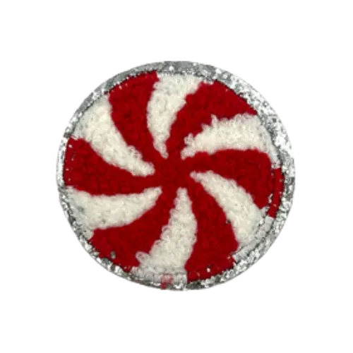 Thermocollant Columbia en forme de sucre d’orge rond et entouré de paillettes argentées. Ce patch peut être placé la pochette personnalisable de votre choix !