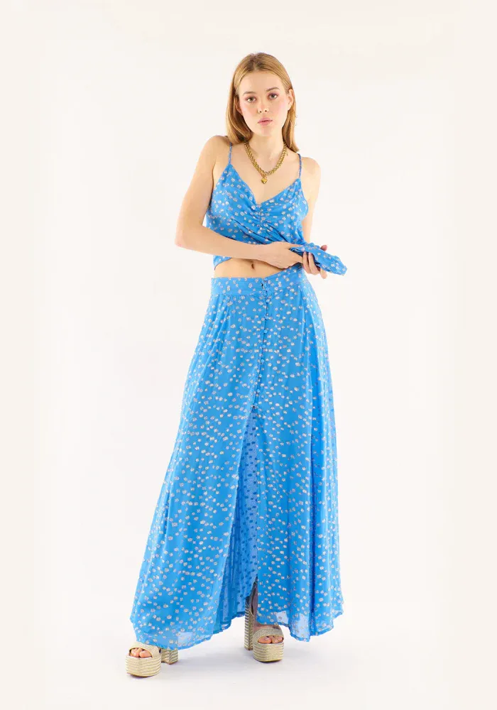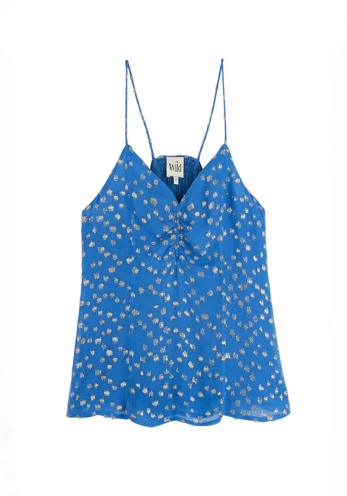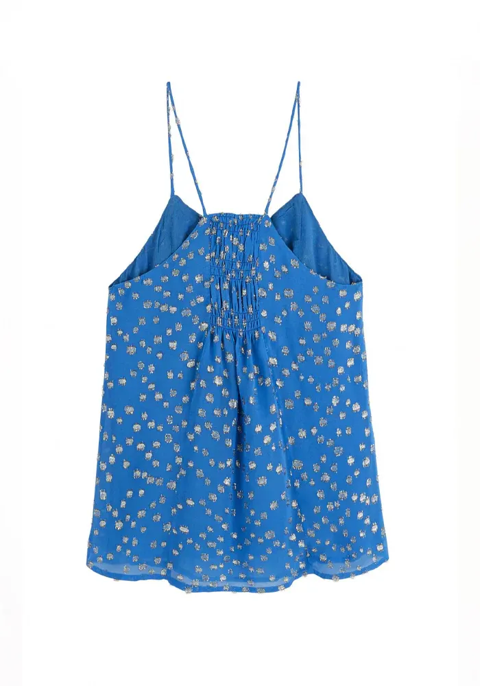 Top Azir à bretelles fines avec un col V avec des pois en lurex dorés.