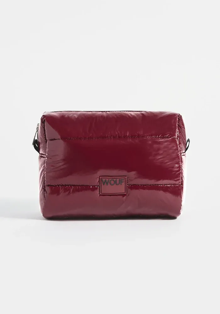 Trousse de toilette Burgundy Glossy avec un effet vinyl bordeaux.