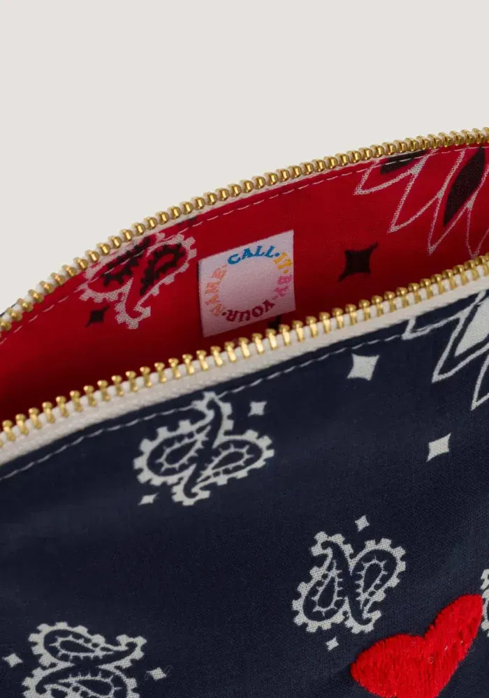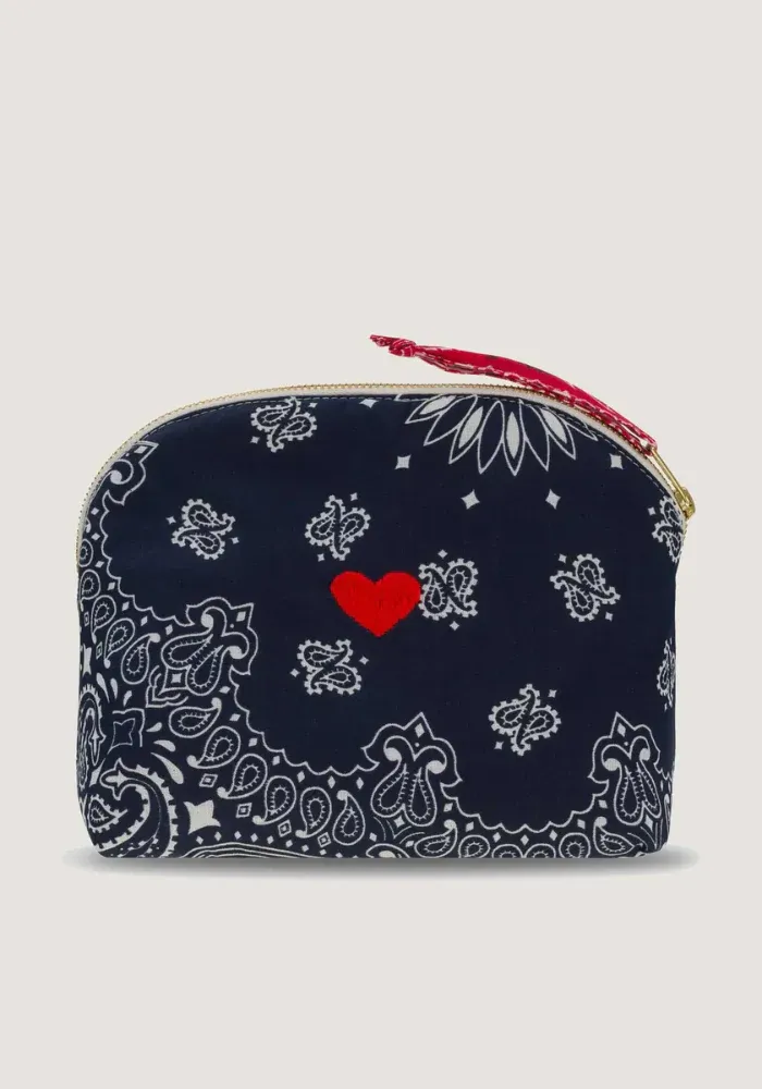 Trousse de toilette Vanity Small en bandana avec un motif coeur brodé.
