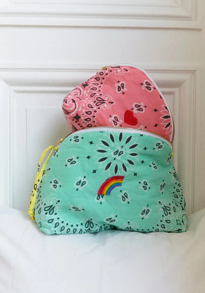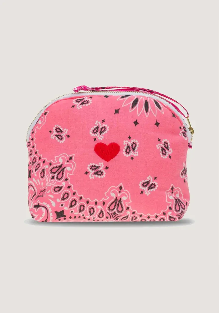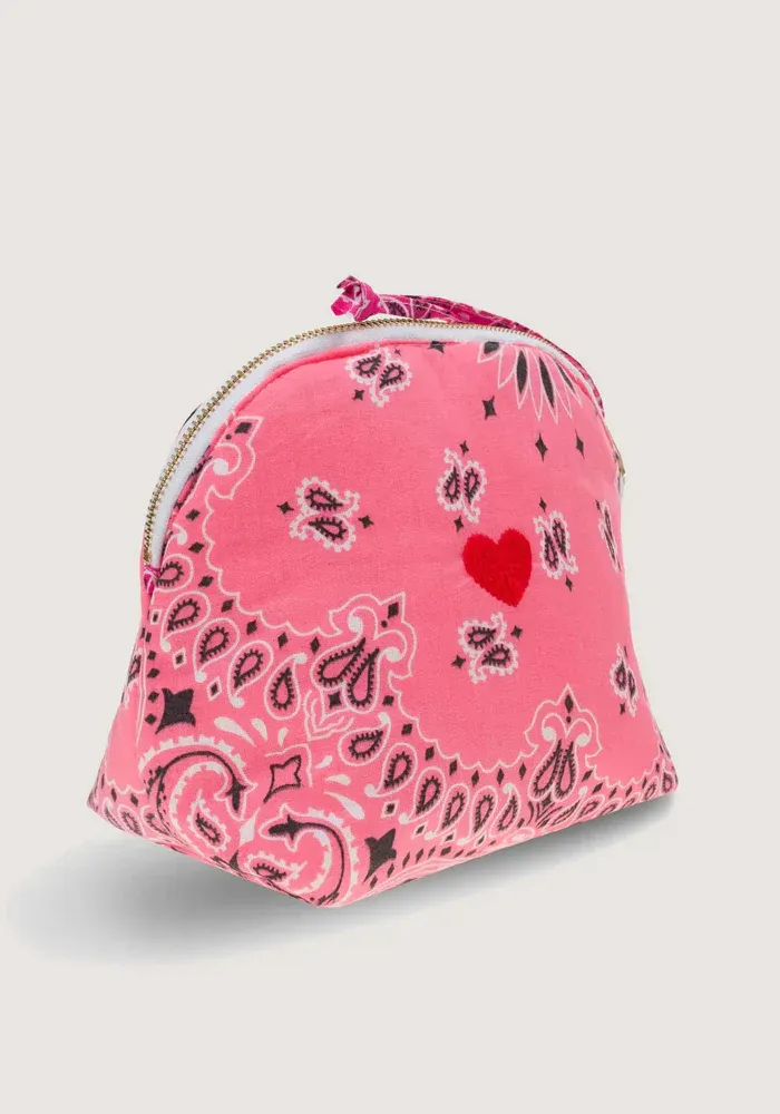 Trousse de toilette Vanity Small en bandana avec un motif coeur brodé.