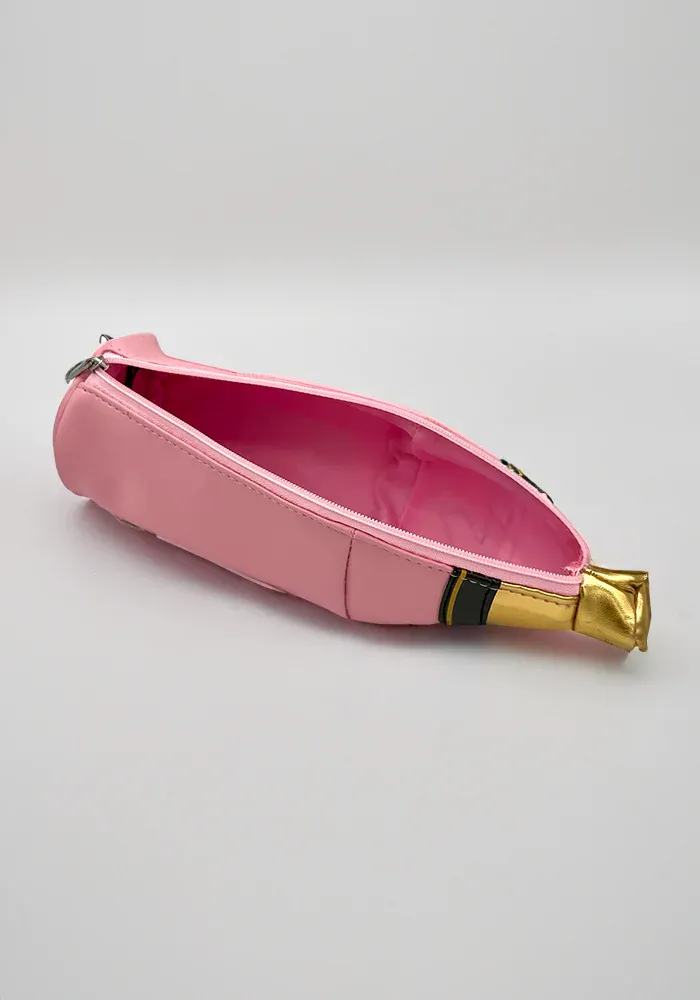 Trousse Yup! Sparkling Wone en similicuir en forme de bouteille en similicuir.