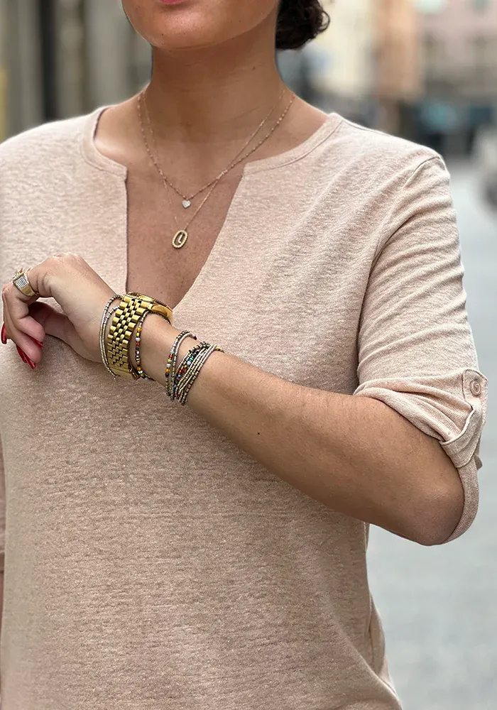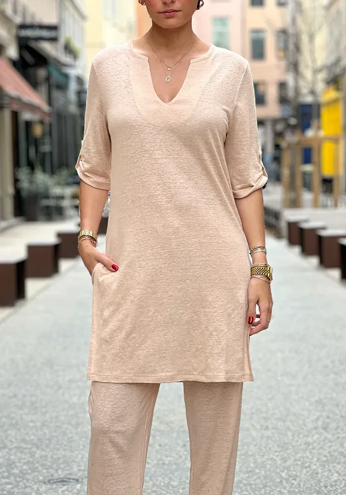 Tunique Alyssa avec des manches 3/4, un col fendu et des fentes sur les côtés.