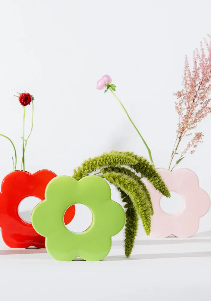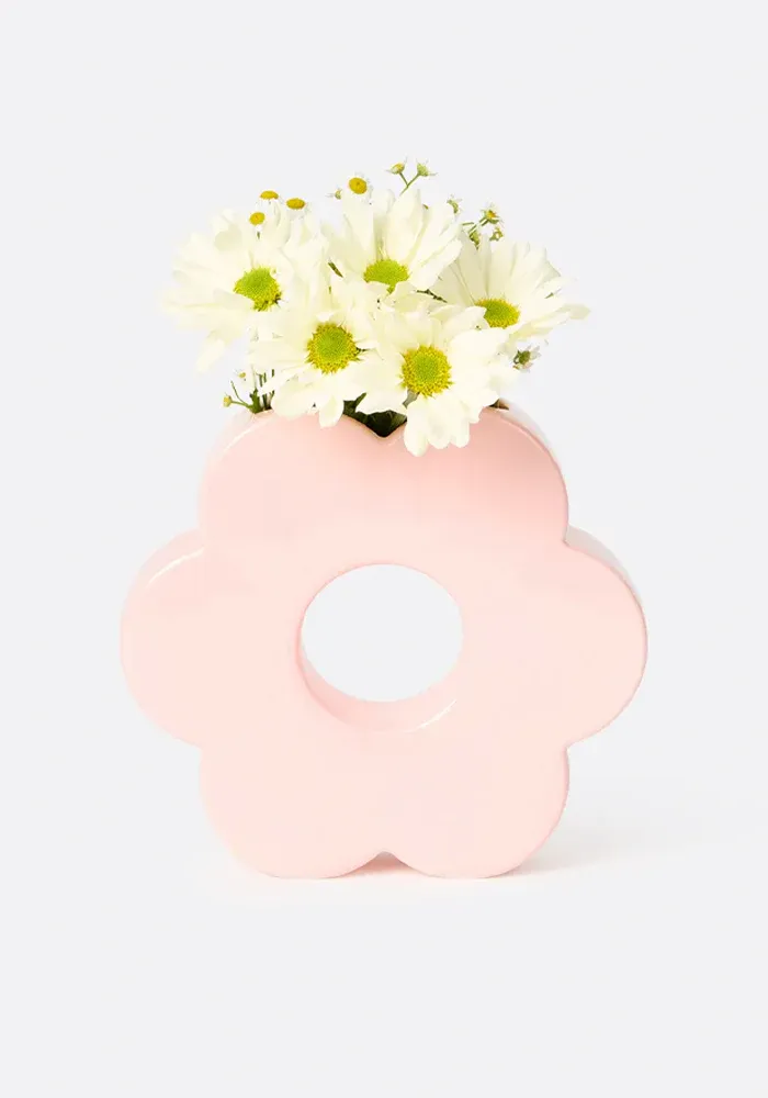 Vase Daisy Rose en céramique et en forme de marguerite.