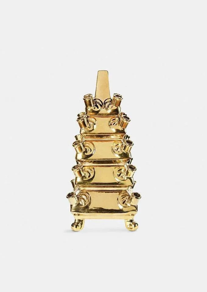 Le vase « Layer » doré s’inspire d’une pyramide de fleurs de la poterie Delft des années 1692-1700. Son design unique et sa finition dorée en font un objet de décoration élégant et sophistiqué.