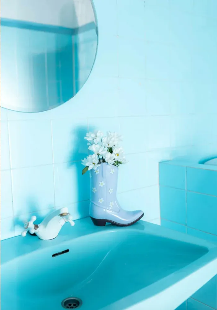 Vase Rodeo lilas en céramique et en forme de santiags.