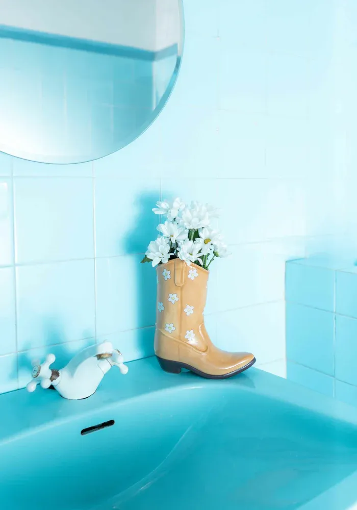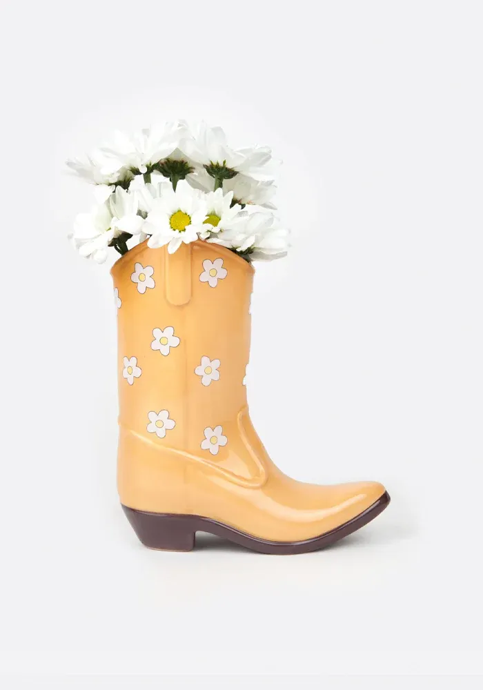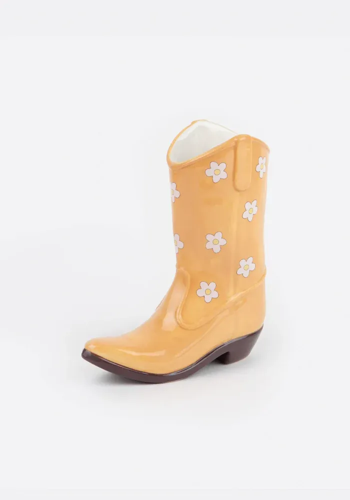 Vase Rodeo jaune en céramique et en forme de santiags.