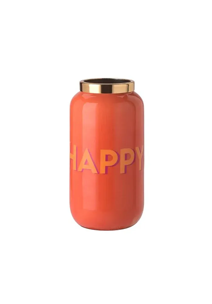Vase Saigon XXS couleur orange avec le mot happy orange et un anneau doré.