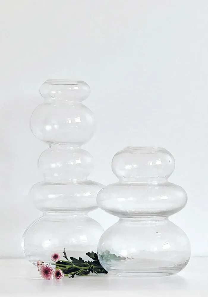 Vase Zen en verre transparents avec 3 boudins de différentes tailles superposés.