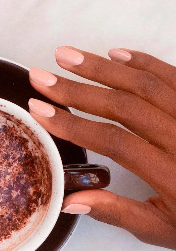 Vernis à ongles semi-permanent couleur beige délicatement rosé
