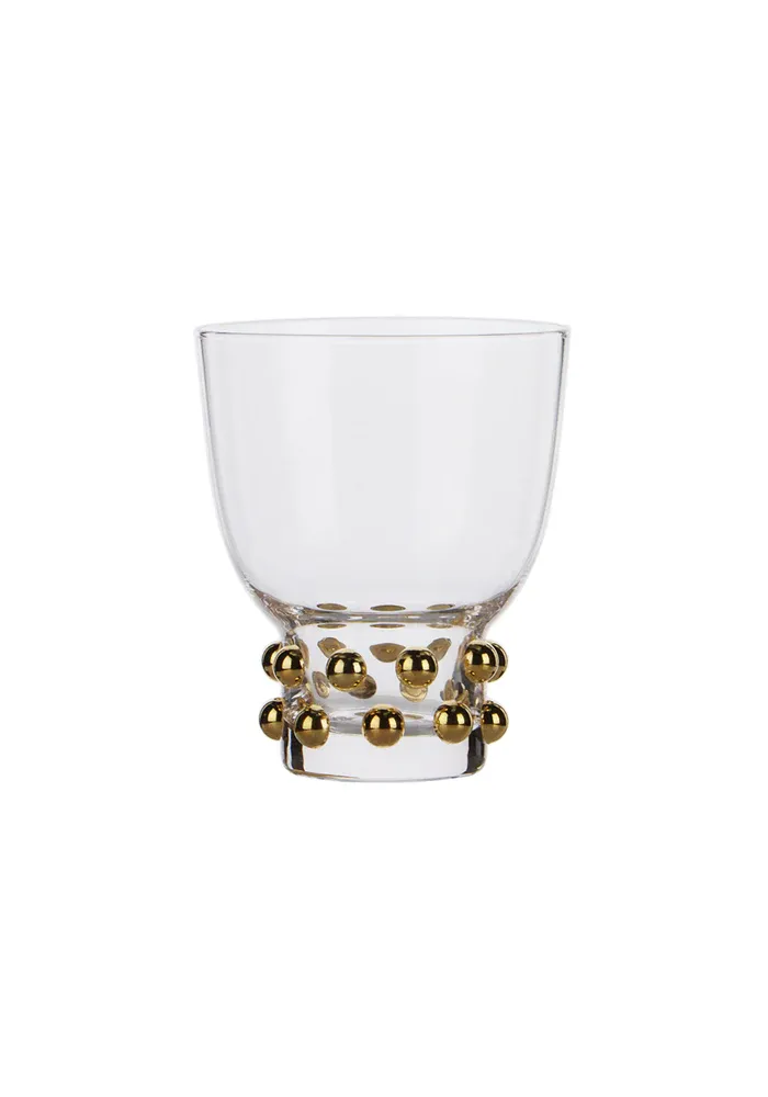 Verre avec deux rangs de perles dorées.
