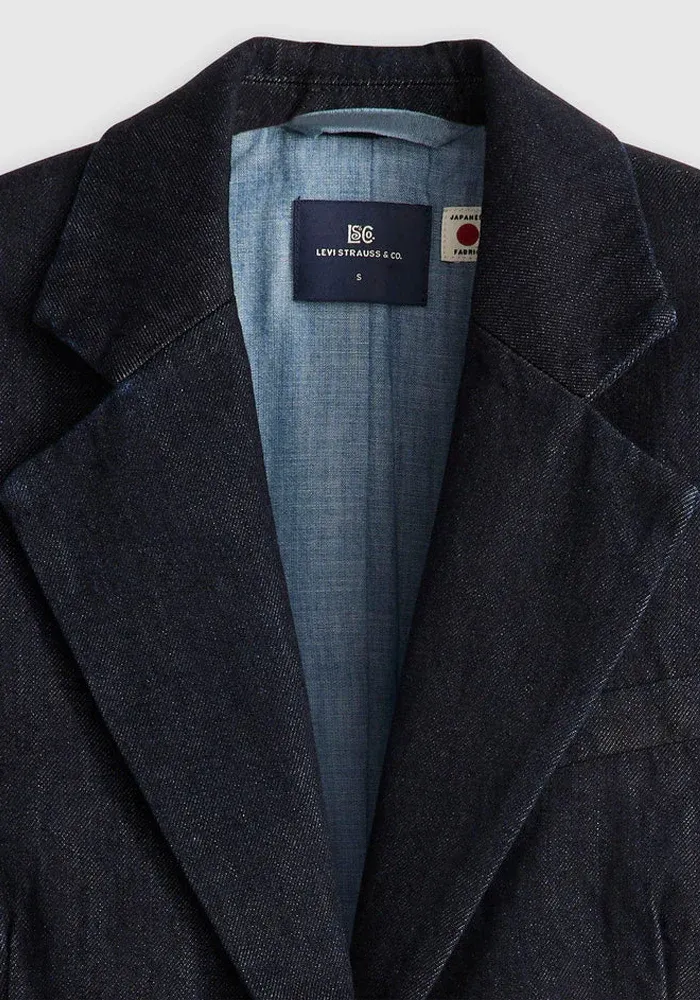 Veste relaxed blazer blue lagoon wash en jean brut.