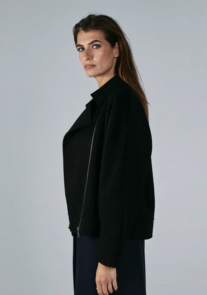 Perfecto noir en 100% laine avec une coupe oversize et deux poches plaquées sur le devant