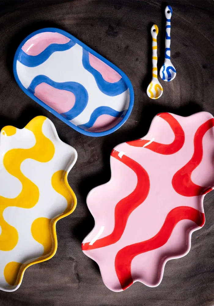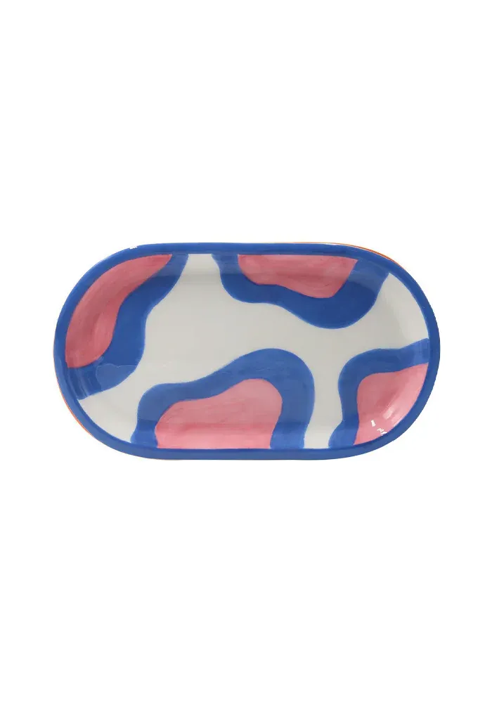 Vide poche Marcela ovale en céramique avec des motifs colorés.