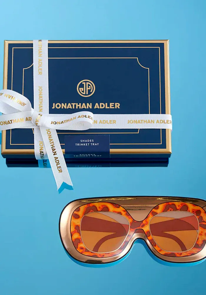 Vide poche Shades en porcelaine en forme de lunettes de soleil.