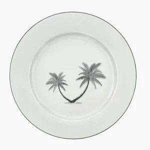 Assiette Grand Modèle En Porcelaine Palmier Double Noir