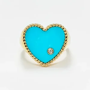 Chevalière Coeur Turquoise