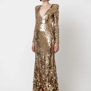 Robe Longue Sequins Dores
