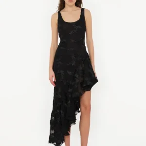 Robe Flower Mesh Ruffle Noire