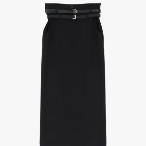 Jupe Droite Noire Avec Deux Ceintures
